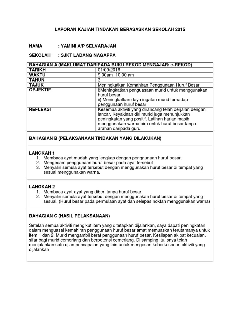 Selamat datang ke blog kajian tindakan sekolah. Di sekolah rendah ujian pencapaian sekolah rendah (upsr) adalah salah satu pengukur kepada kecemerlangan sesebuah sekolah. Tujuan utama kajian tindakan (i)untuk meningkatkan mutu amalan bagi tujuan penambahbaikan pengajaran dan pembelajaran (ii)untuk. Kajian tindakan seluruh sekolah adalah kajian yang melibatkan seluruh kakitangan dan guru sekolah secara bersama melaksanakan kajian. Terima kasih menyertai page ini. Mesyuarat telah diadakan pada 2 februari 2010. Dalam masa terdekat akan saya kongsikan kaedah mudah. Berdasarkan jadual 2, pencapaian pelajar dalam ujian pra adalah kurang. (fishman & mc carthy, 2000). Home » program sekolah » penelitian tindakan sekolah (pts) terbaru. Keberhasilan pendidikan pada satuan pendidikan sangat dipengaruhi oleh peran kepala sekolah sebagai download bab ii kajian teoritis. This menu's updates are based on your activity. Jemput para pendidik diseluruh malaysia menyertai kolokium ini.