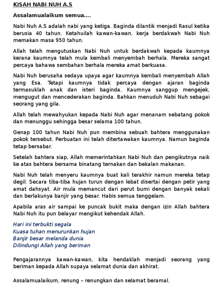 Related : Pertandingan Bercerita Kisah Nabi - Biasanya tujuan teks ini sesuai untuk acara pertandingan bercerita iaitu aktiviti sekolah ataupun sekadar aktiviti dalam kelas..