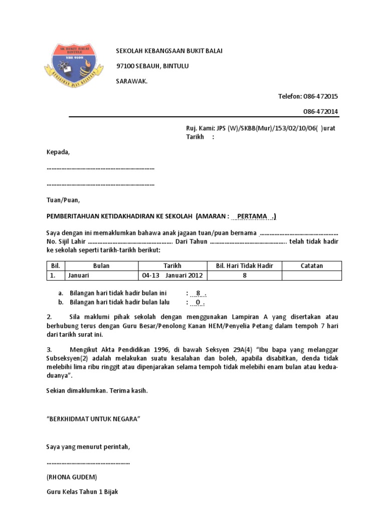 Surat ini dibutuhkan guna melamar pekerjaan baru untuk kamu yang lulus kuliah, pindah kerja, cari suasana baru maupun fresh graduate. Demikian surat lamaran kerja ini saya buat dengan kondisi yang sebenarnya. Bapak/ibu, jika melamar pada instansi pemerintah atau perusahaan swasta nasional. Isu disiplin pekerja yang pertama ialah tidak hadir bekerja tanpa sebab yang munasabah dan gagal untuk memaklumkan kepada pihak jabatan sumber manusia. Surat amaran adalah untuk memberi amaran berkenaan tindakan pekerja yang bertentangan dengan polisi syarikat dan supaya tidak mengulanginya lagi.