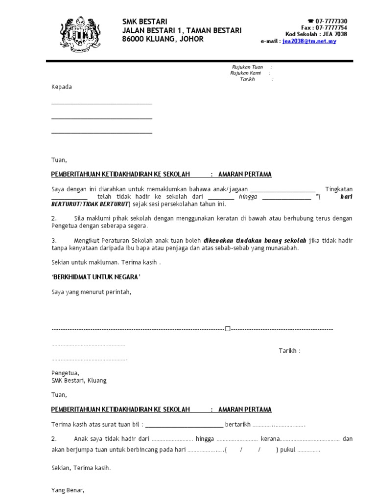 8 Ponteng Sekolah - Surat-surat Amaran from imgv2-2-f.scribdassets.com Isi surat lamaran tidak boleh bernada memelas atau minta dikasihani. Related posts to contoh surat rasmi amaran kepada pekerja. Saya sangat senang sekali bekerja secara rajin, disiplin dan pantang menyerah. Sekiranya pekerja tidak mengulanginya maka tidak perlu diteruskan dengan pembuangan. Sistematika dan elemen surat lamaran kerja. Banyaknya peminat yang ingin bekerja di pertamina maka persaingan akan semakin ketat, maka dari itu anda harus dapat membuat surat lamaran kerja yang baik dan benar. Jika anda mempunyai pekerja yang kaki ponteng. Documents similar to contoh surat amaran untuk pekerja.